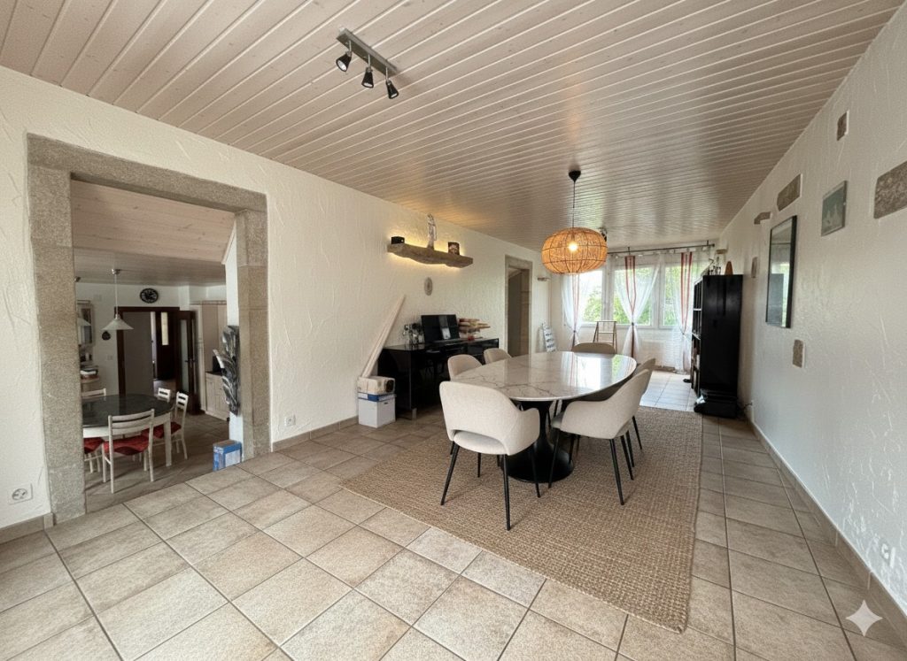 À l’intérieur, la maison offre un chaleureux séjour baigné de lumière naturelle, agrémenté d’un poêle à bois qui apportera une touche de charme et de confort lors des soirées d’hiver. Trois belles chambres à coucher complètent l’espace nuit, offrant à chacun son intimité.
