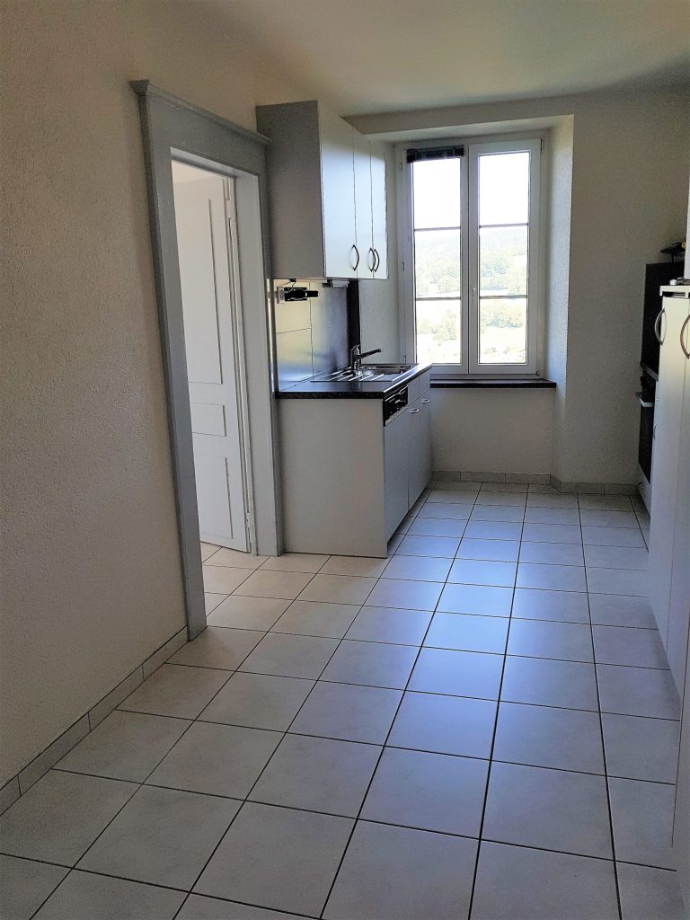 Cuisine agencée et habitable, lumineux, rénové, galetas, cave à vin, 2ème étage sud. Vue sur la place et le temple devant et sur le Doubs derrière. A proximité immédiate : arrêt de bus TUB, collège, boulangerie et épicerie. A 200m de la place de jeux et de la forêt.