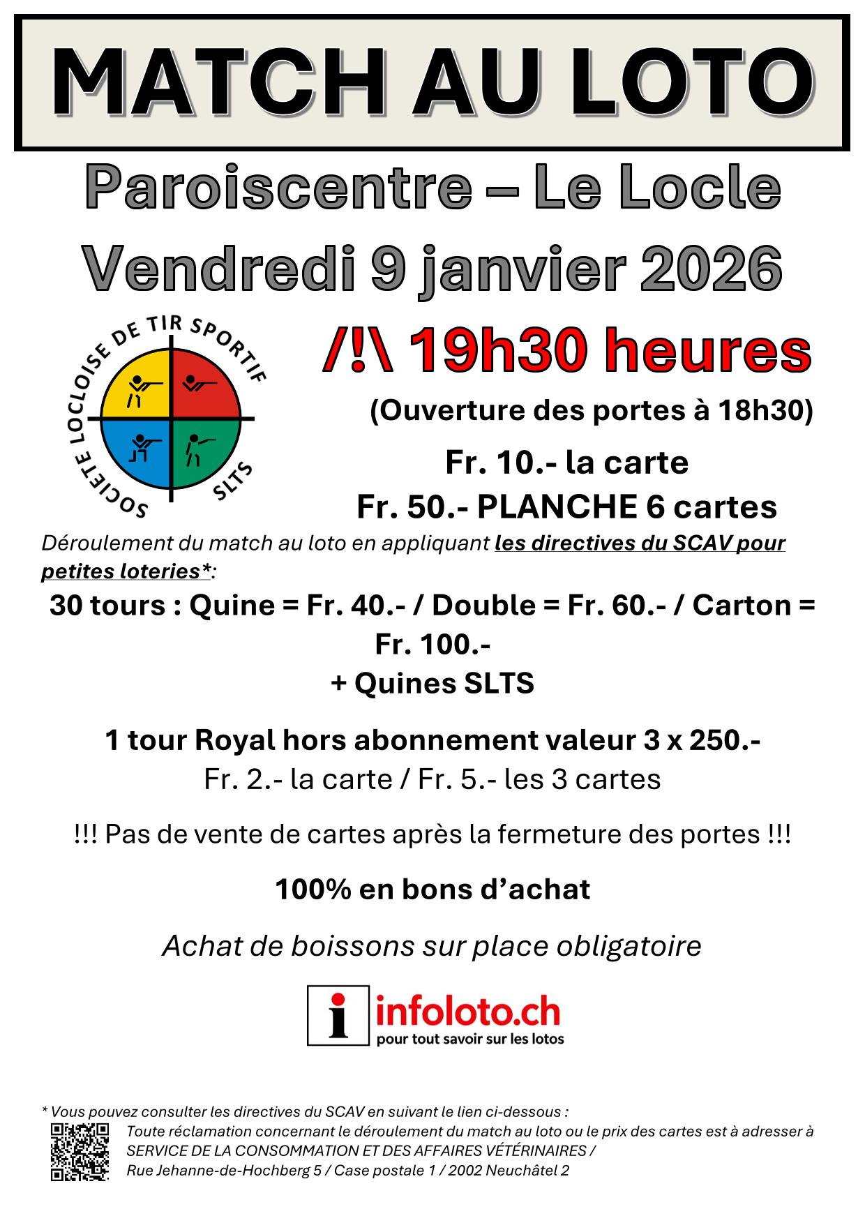 30 tours :Quine = Fr 40.– / Double = Fr 60.- / Carton = Fr 100.–) + quines SLTS