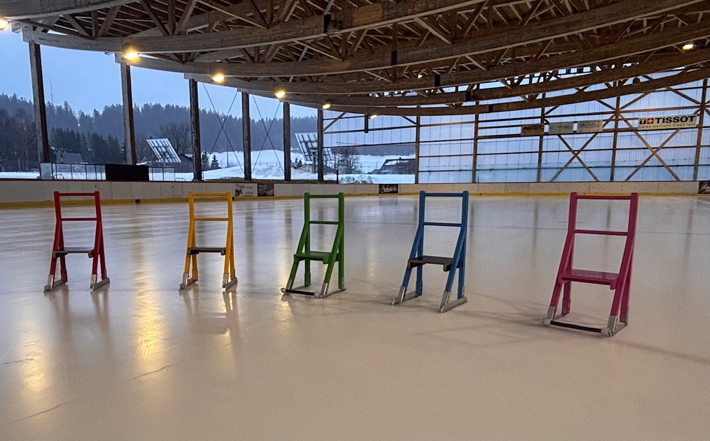 Mise à disposition d’aides au patinage : petites chaises permettant de s’asseoir ou de se tenir et de se déplacer sur la glace (gratuit, contre caution)